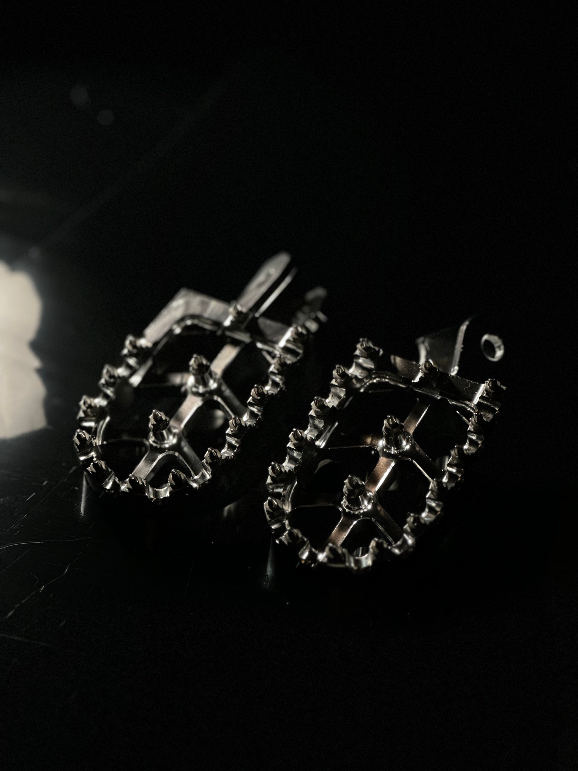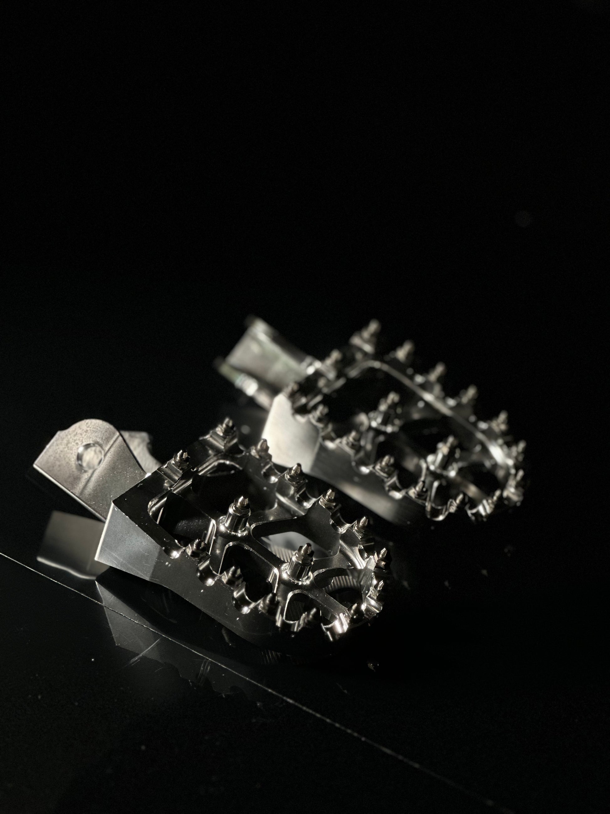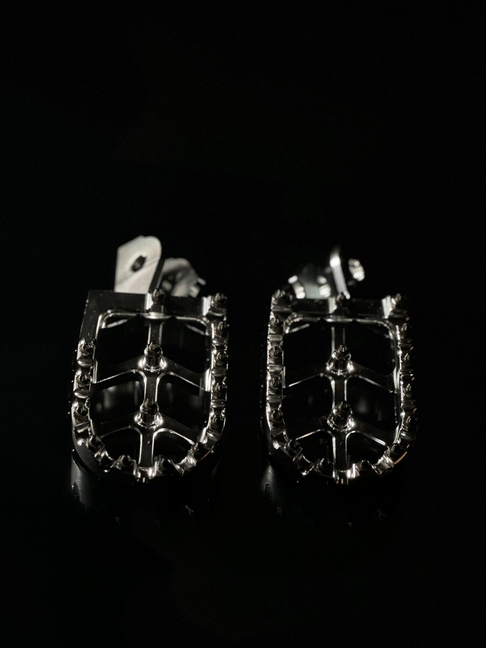 These raw-polished chrome pegs don’t just look clean — they shine. Built to handle anything from street rides to off-road hits, these pegs upgrade both your grip and your bike’s style instantly.